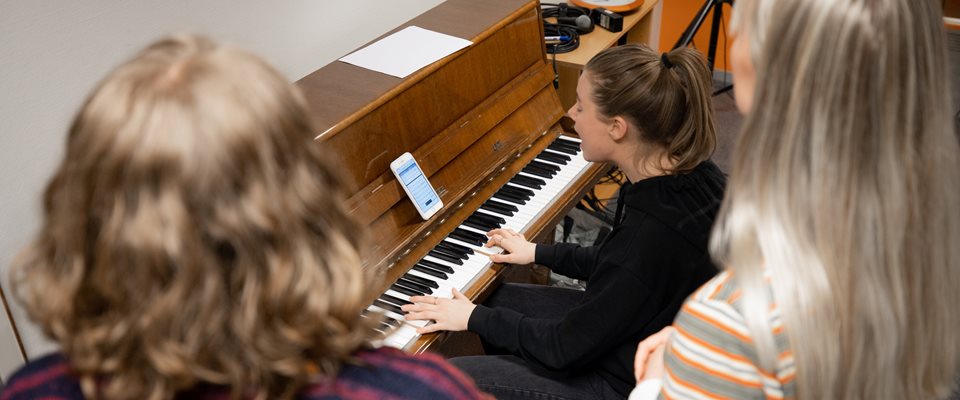 - Hørelære: en skriftlig del og en muntlig del. Vurderes etter gradert skala A-F, hvor karakteren teller 40 % av emnet.