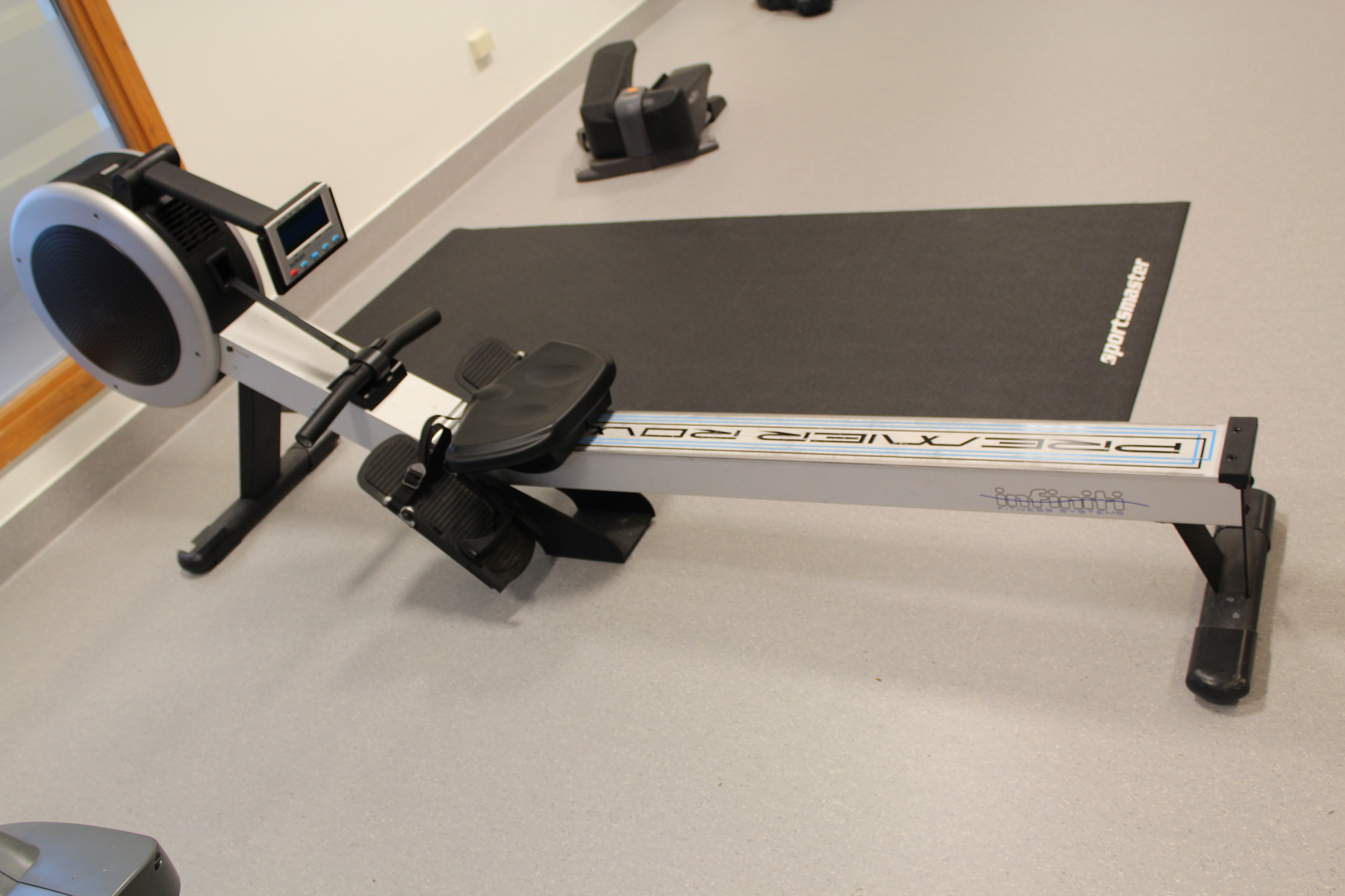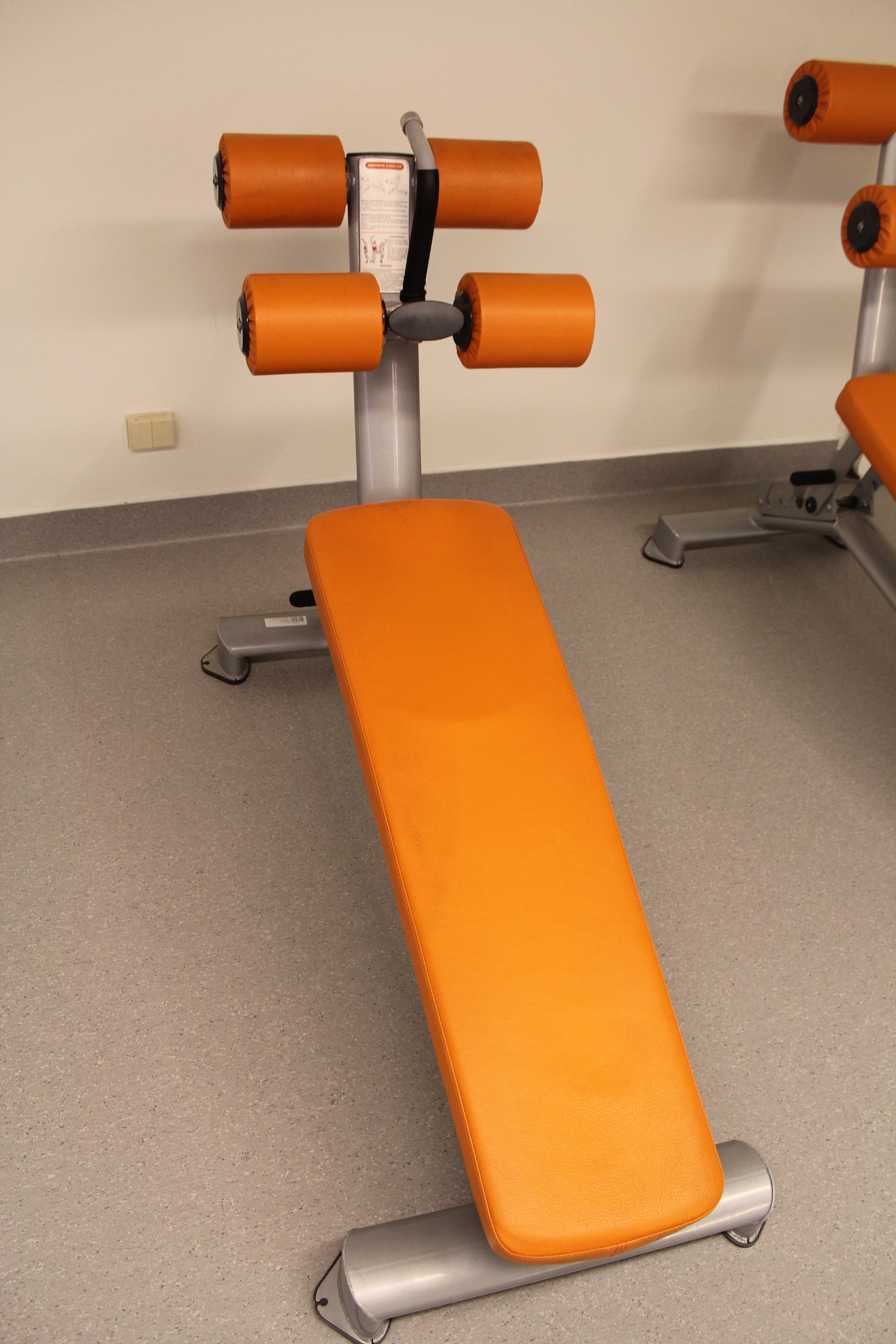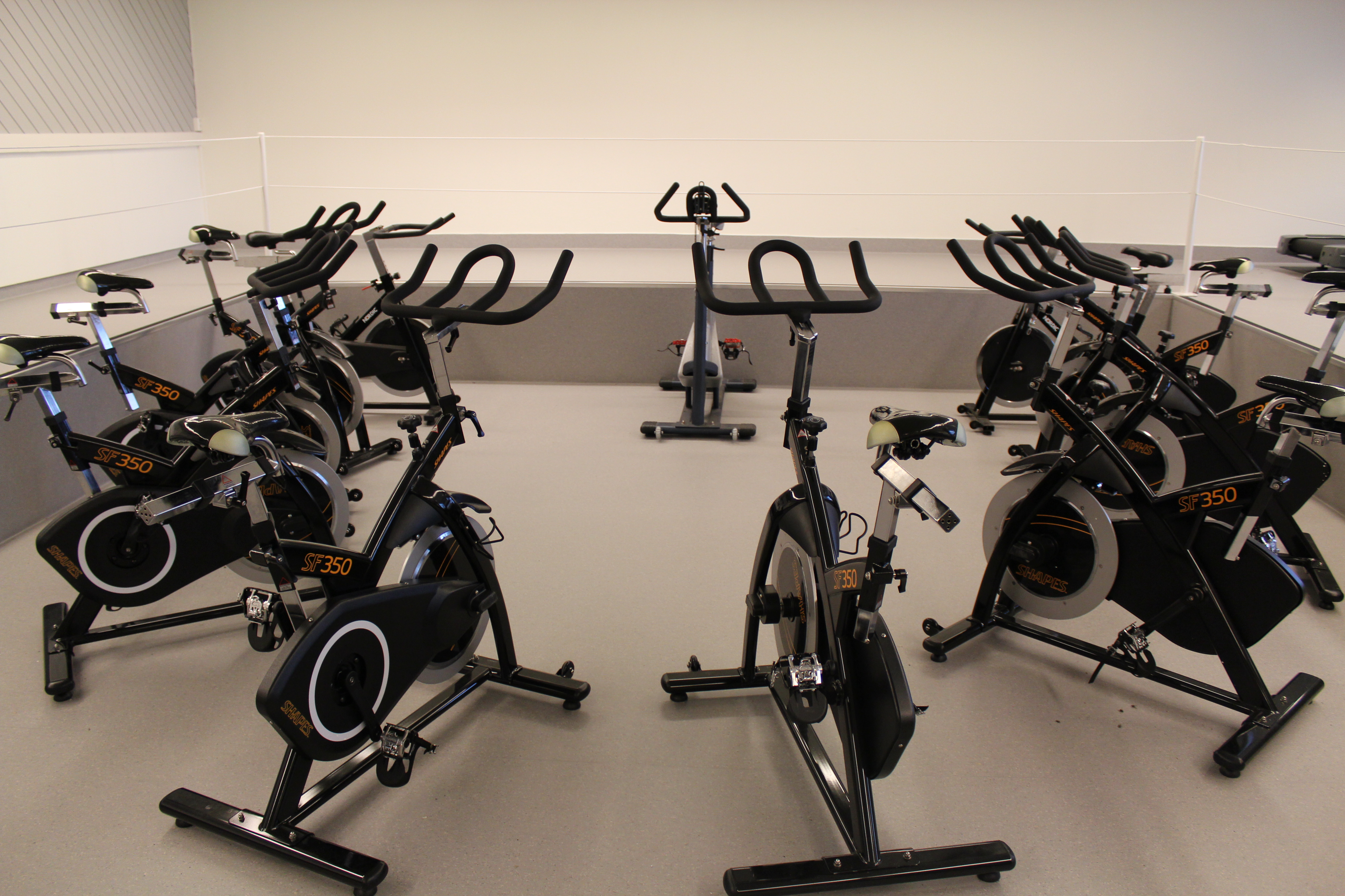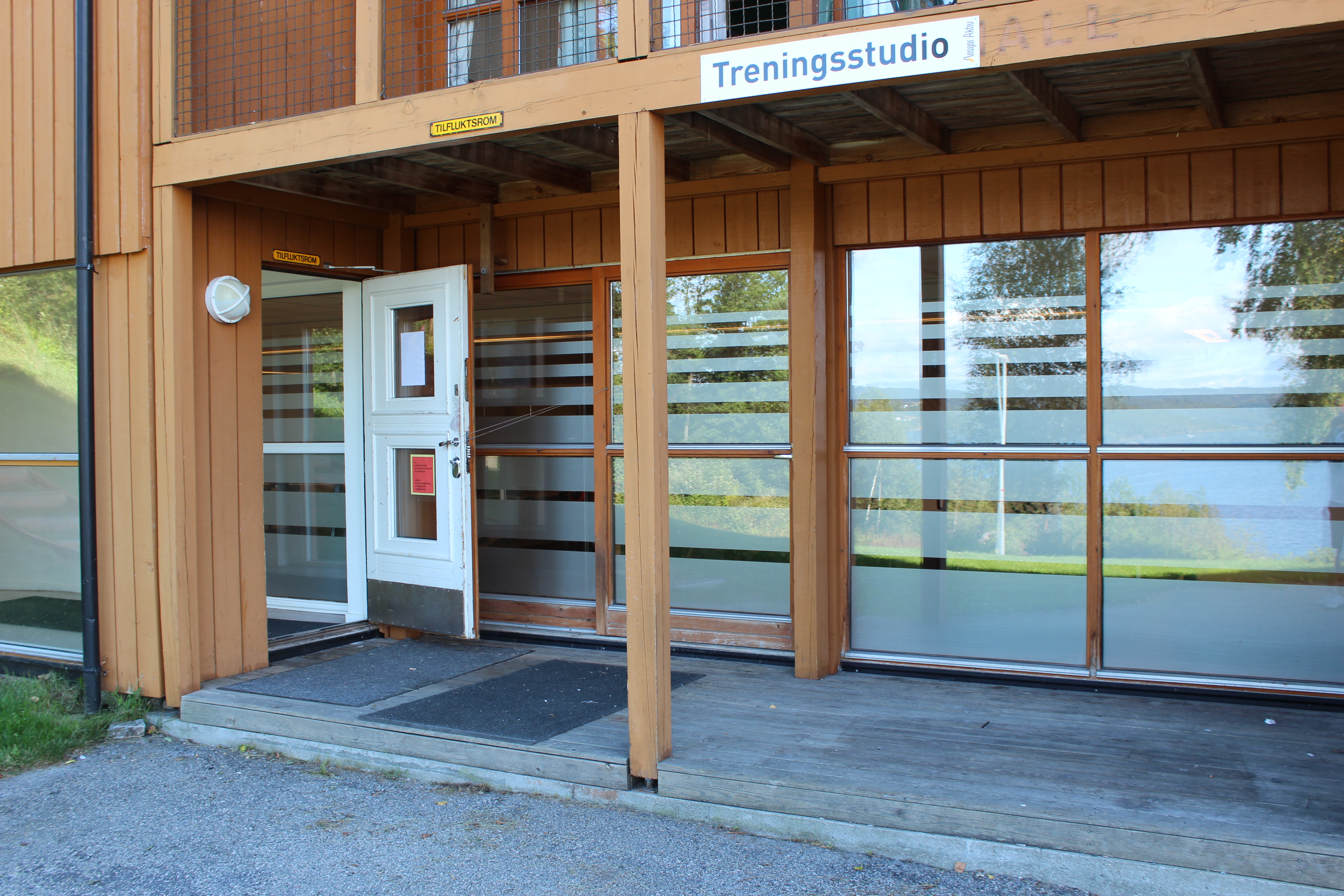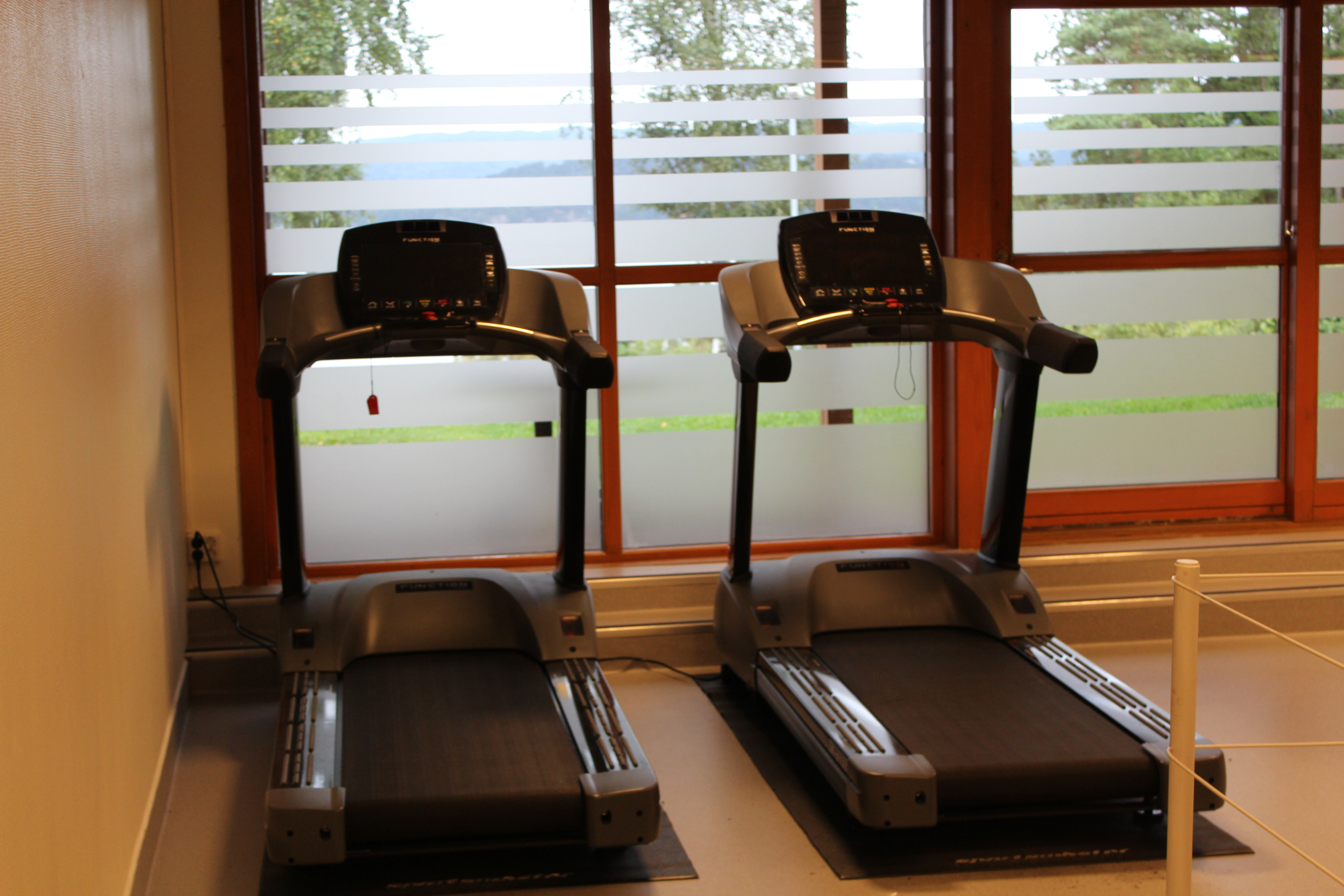 Regler for bruk av treningsstudio står oppført i rommet – Husk innesko.