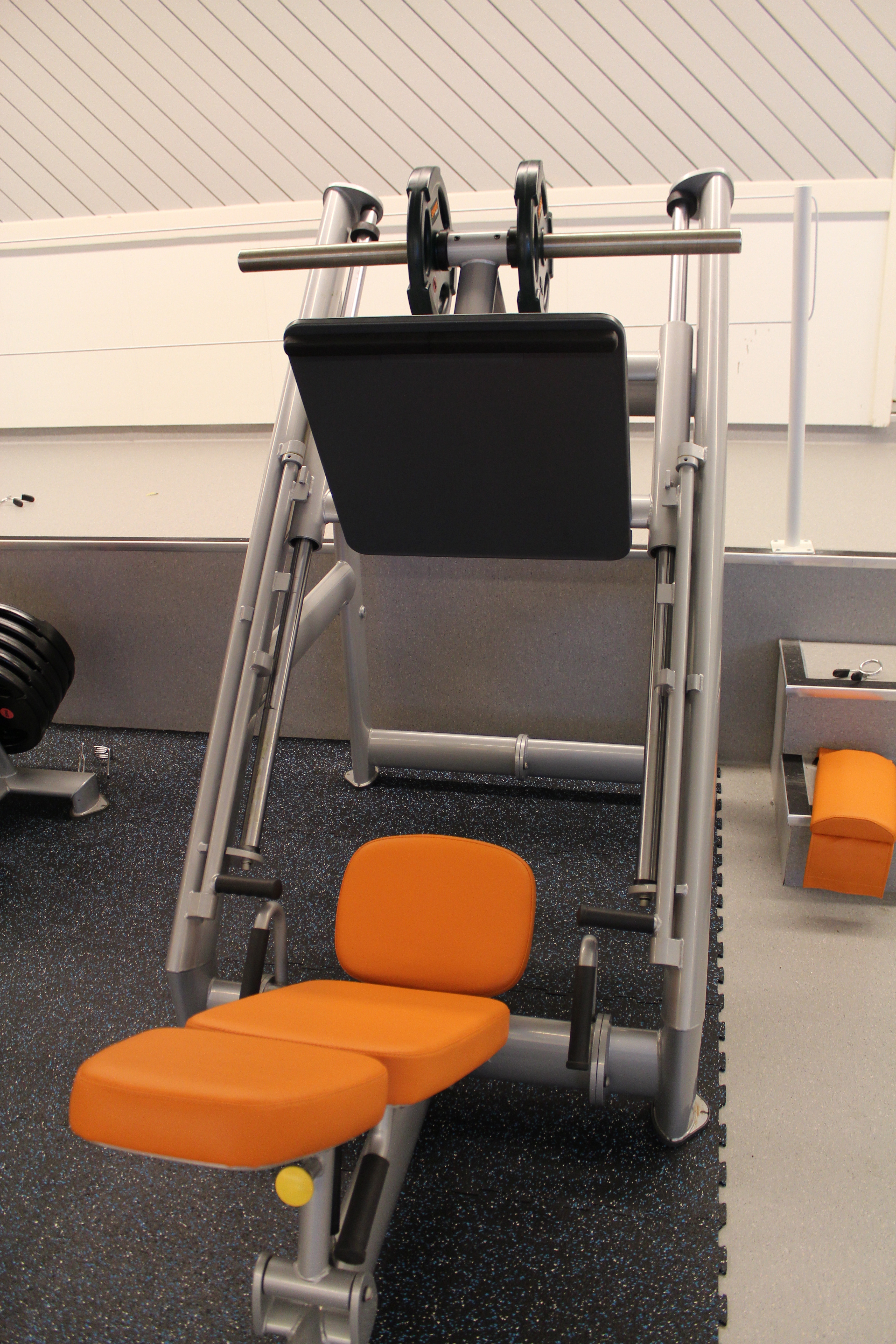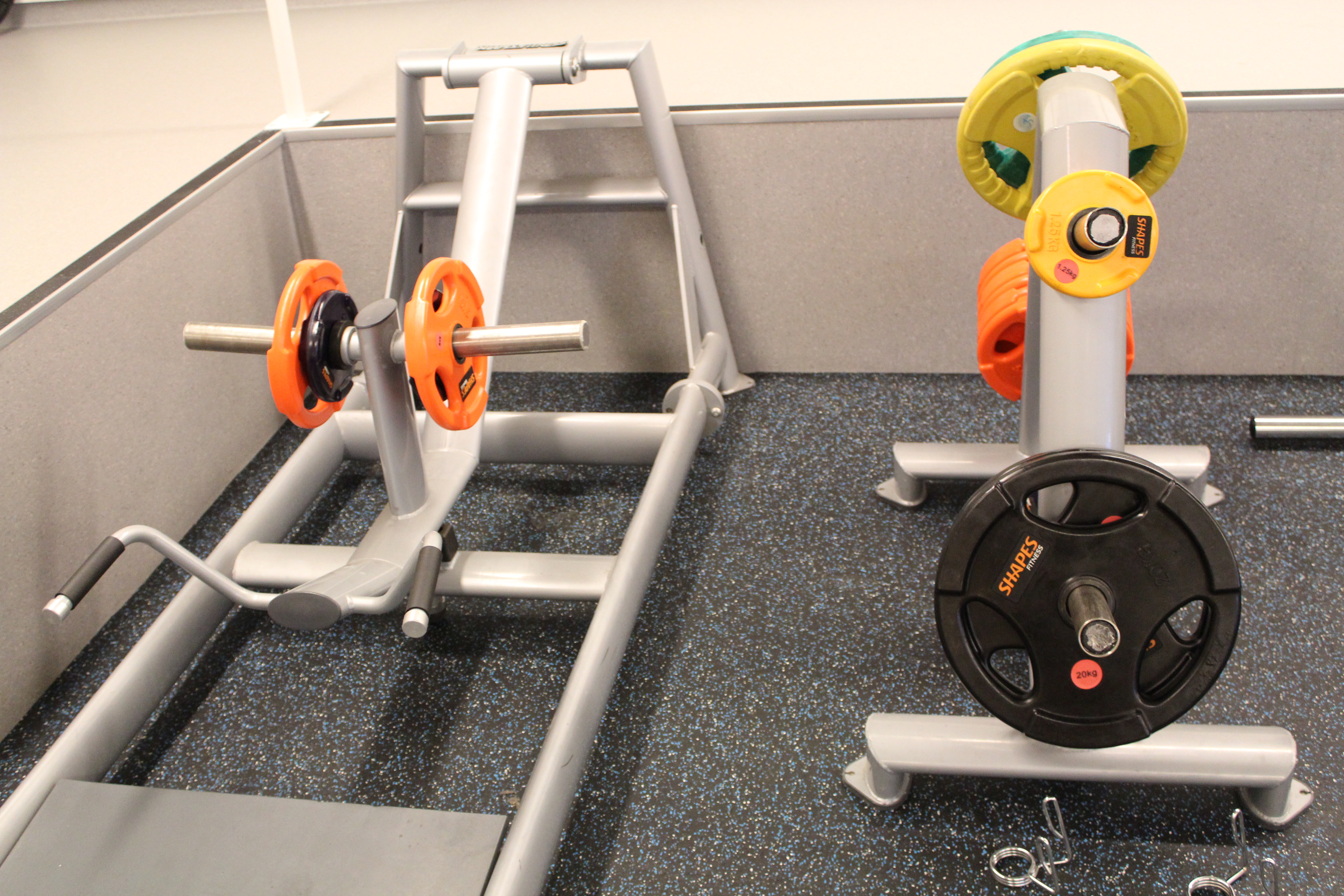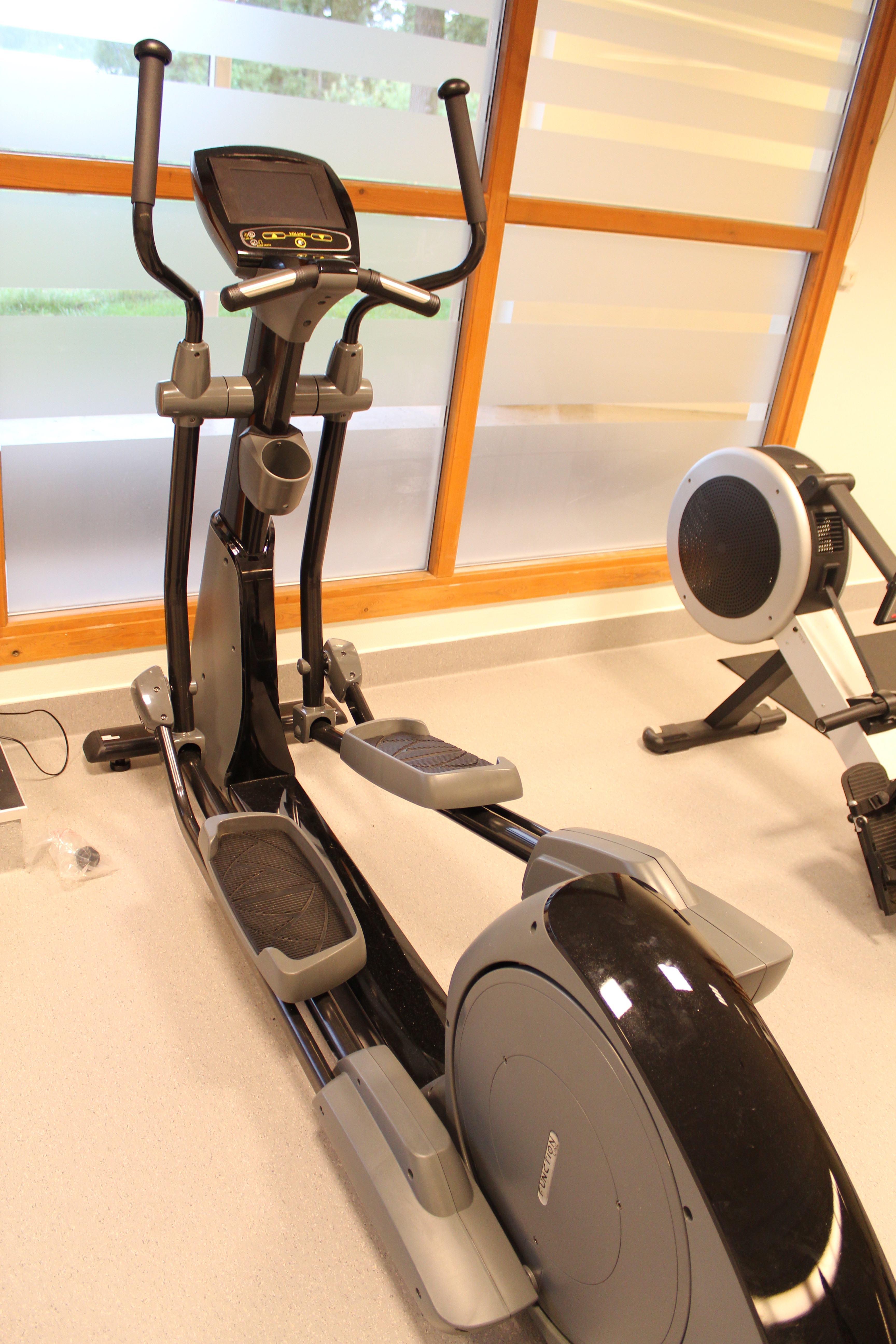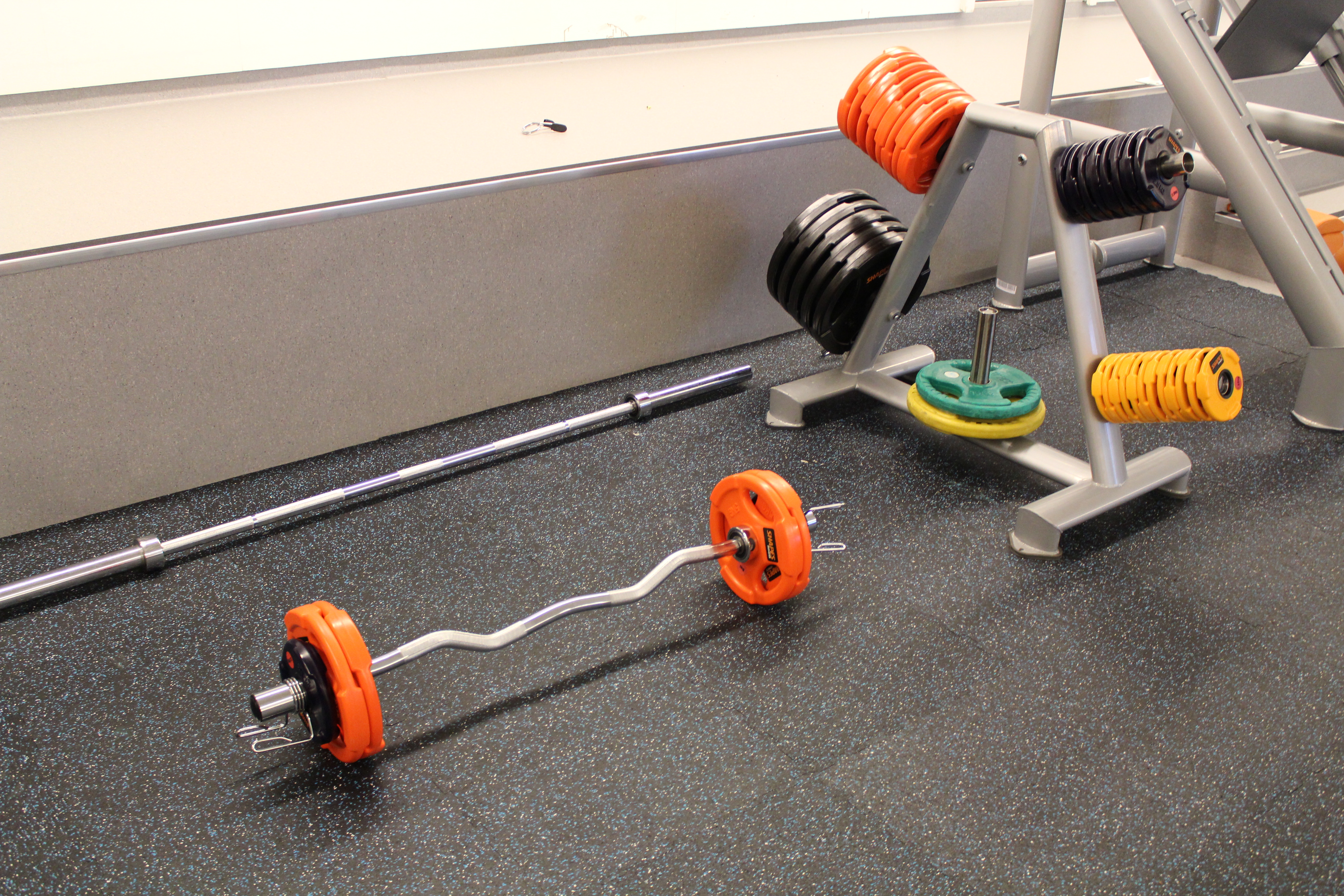 Regler for bruk av treningsstudio står oppført i rommet – Husk innesko.